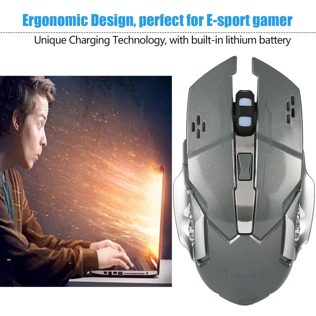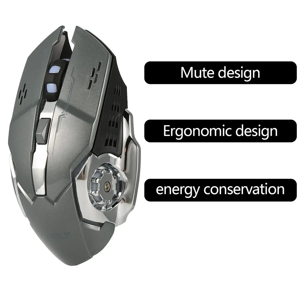 Q13 Rechargeable Wireless Mouse Silent Ergonomic Gaming Mice 6 Keys RGB Backlight 2400 DPI for Lapt