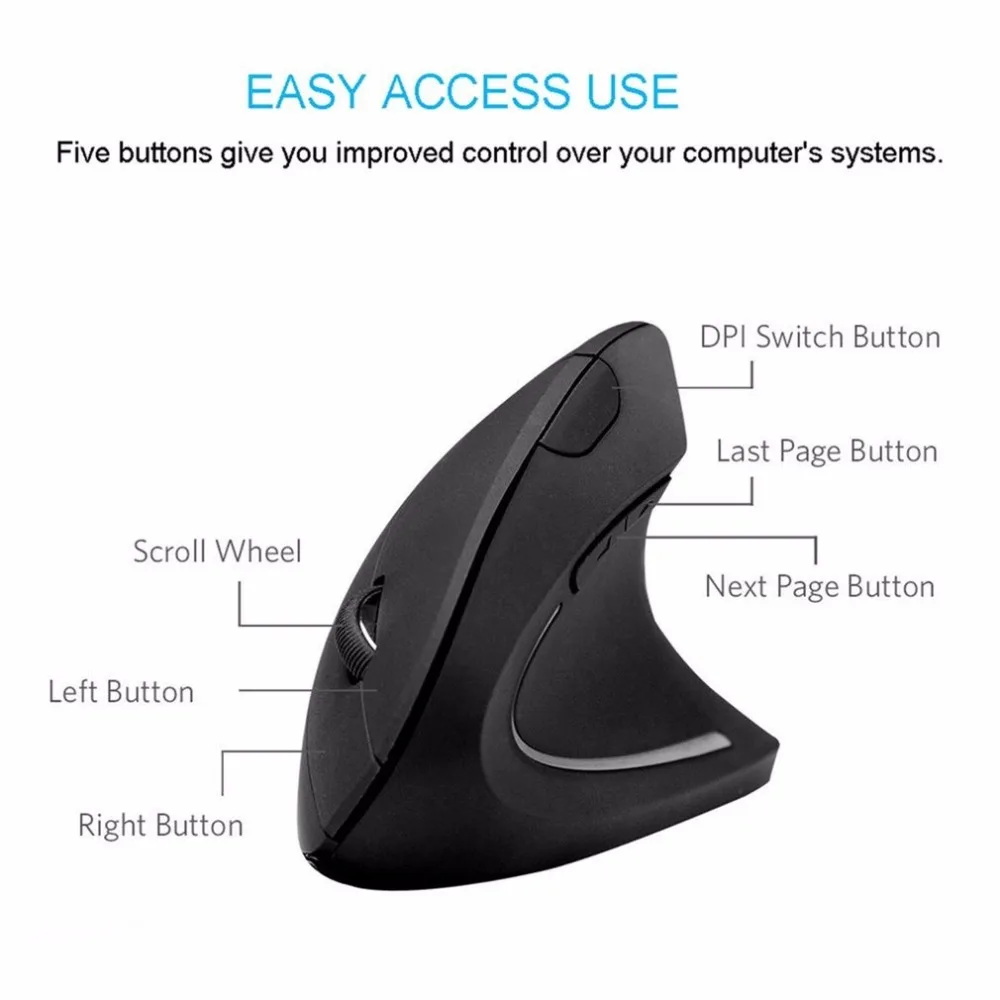 BEST Wireless Ergonomic Vertical Mouse 2.4G 6 Button Mice 1000 DPI Computer USB Optical Mouse for PC Lap